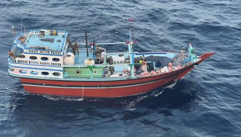 La marina estadounidense hundió el buque que llevaba las armas por considerarlo inseguro, dijo el Mando Central. Los 14 tripulantes quedaron detenidos.